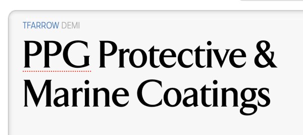 Closest I can find is Arrow—I suspect that PPG uses a customization of it in their branding. EDIT: Adding a preview of Arrow—the only difference I'm seeing between the ID sample and Arrow is the height of the vertical bar on the G....